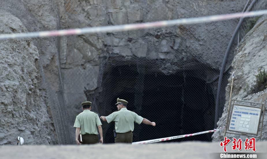 2010年8月5日,位于智利科比亚波市附近的圣何塞铜矿发生严重塌方,33名矿工被困井下700米处。图为33名矿工被困的矿井洞口。