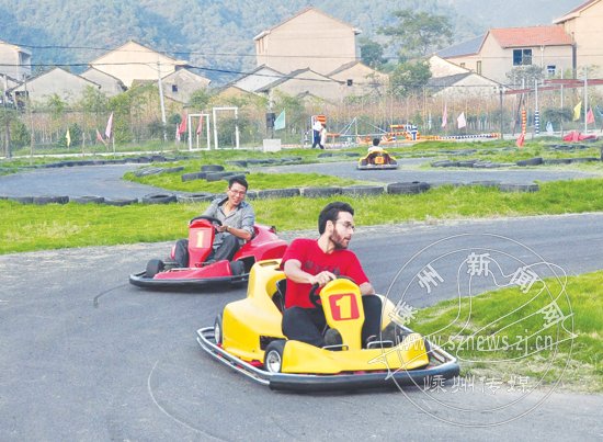 下王镇旅游已经告别了单一的山水模式,在下王,游客们既能欣赏到优美的自然风光,还能体验滑草、漂流、玩卡丁车等娱乐性、运动性较强的项目,丰富的旅游“套餐”吸引了越来越多的游人。瞧,在四明山激情岁月体验营,慕名而来的“老外”也玩得很过瘾。