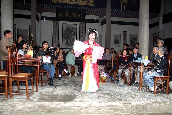 2009年9月,“相约越乡”全国戏迷擂台赛在施家岙揭开序幕,此后,每月一次的比赛,更是吸引了全国各地的戏迷闻讯前来。前几天,有一帮从江苏过来的戏迷,因为迷恋三花一娟的老调,竟然一口气点了20来个唱段。这个流派方唱罢,那个流派又登场,台上越音婉转,台下叫好连连,绳武堂每天浸润在丝竹管弦之中。
