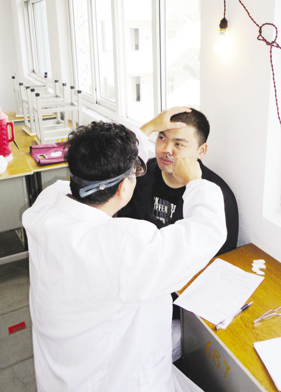 我市今冬征兵体检目测工作已启动,广大适龄青年踊跃到各体检站参加体检。据悉,我市今冬体检目测工作将持续到10月30日,预计全市将有5000名适龄青年参加。图为昨日上午,甘霖镇适龄青年正在接受体检。