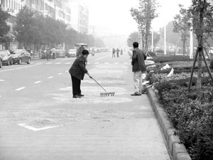 10月16日早上,在市区长春路(市工商局附近),两位粮农将大片湿漉漉的稻谷晾晒在路面上(如图),影响路人过往。连续几天的阴雨天,粮农的确存在晒粮难,这本身可以理解,但如果把稻谷肆意晾晒在市区公共道路上,却是不应该。 (小马)