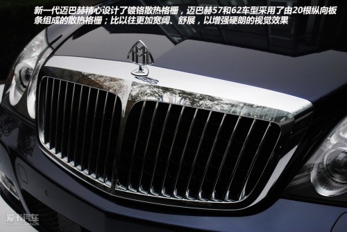新一代迈巴赫精心设计了镀铬散热格栅,迈巴赫57和62车型采用了由20根纵向板条组成的散热格栅;比以往更加宽阔、舒展,以增强硬朗的视觉效果。