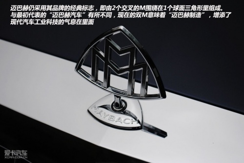 迈巴赫仍采用其品牌的经典标志,即由2个交叉的M围绕在1个球面三角形里组成。与最初代表的“迈巴赫汽车”有所不同,现在的双M意味着“迈巴赫制造”,增添了现代汽车工业科技的气息在里面。