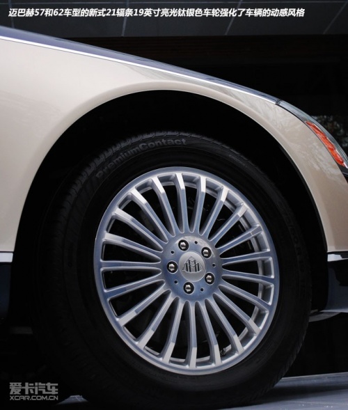 迈巴赫57和62车型的新式21辐条19英寸亮光钛银色车轮强化了车辆的动感风格,所有车型都可以选用新式巴哈马群岛蓝色面漆。