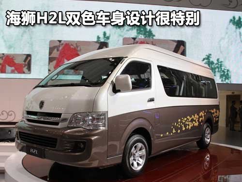 大海狮H2L是华晨金杯推出的全新H2平台的首款车型,在外观与空间结构、设计风格和工艺品质上均有重大突破,与现款的海狮及阁瑞斯商务车的造型完全不同,双色车体设计相当的抢眼。