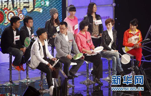 10月24日,奥运冠军何雯娜(前右一)、高敏(前右三)和张国政(前左二)在总决赛上担任明星评委。当日,2010“炫舞激情”NBA拉拉队选拔赛北京总决赛落幕。最终,李春汶战胜其他四位选手沈婷、桂园、罗曼雅和徐璐,获得“中国第一拉拉宝贝”的称号。新华社记者费茂华摄