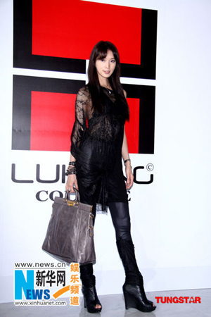 林志玲蕾丝装亮相发布会 现身看秀众人簇拥(图)
