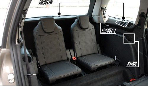 第三排的两个座椅是大C4毕加索专门为家中未成年人准备的,也只有他们能在这里坐的比较舒服。虽然空间方面拥挤了一些,但第三排的周边配置却一点不含糊。甚至还包括了独立的空调出风口和侧窗遮阳帘,可谓照顾周到。