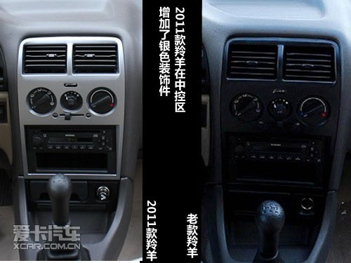 2011款羚羊的整体内饰与老款相同,任何细节的形状都没有发生改变,但是区别还是显而易见的。那就是增加了银色塑料件。
