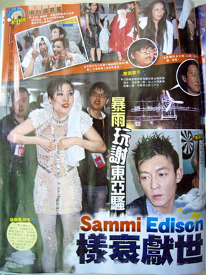 鲇鱼北上让沿海暴雨连场,影响上周六在上海露天虹口足球场举行的东亚群星演唱会。当晚打头炮的黎明空降出场,谁知现场反应一般让他一脸没趣。到郑秀文出场时雨势转大,让她几乎滑倒在地,有舞蹈员更跌下台,幸无大碍。当晚有份出场的何韵诗也忍不住狂轰大会:“都没见过一个演唱会不给人拿伞上台!”身负两个灯泡演出的杨千嬅猛喊漏电。而正式复出的陈冠希,有干爹黄秋生、郑秀文和农夫一起护航,反应热烈。压轴出场的刘德华遭遇当晚最大雨势,他笑言:“我打了鞋底不怕滑,但真的没试过这么大雨唱歌。”而在后台,花容失色的郑秀文狂甩身上的筒状弹力胸围大喊:“连内衣都湿透了!”而陈冠希也变落汤鸡。至于早退的黎明,有工作人员透露:“可能因为下雨,反应不好,他脸都黑了,还说某人回来就累街坊喔!”