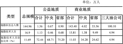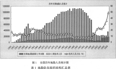 从表中的数据可以看出,我国地质人才占从业人员比例偏低,高学历人才比例偏低,专科、中专技校层次比例偏高。