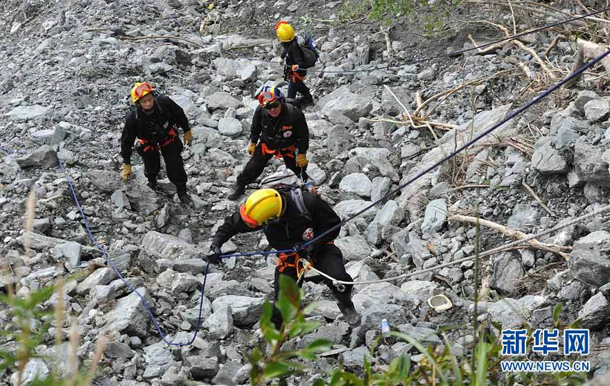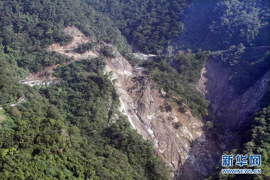 10月25日航拍的位于台湾宜兰县境内的苏花公路塌方搜救现场。当日,200多名台湾陆海空搜救人员持续在苏花公路和附近海域、空域进行全方位搜寻,陆上、海上、海面下和空中搜寻同步展开。新华社发