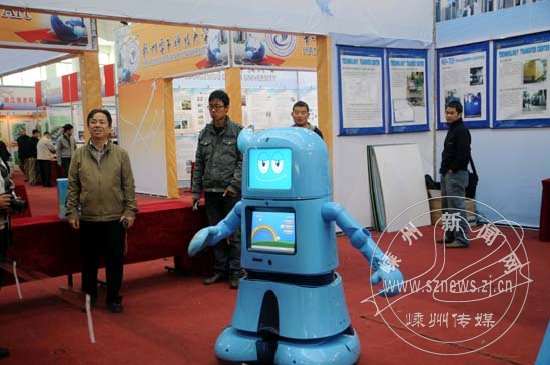 在高新技术成果展,会唱歌跳舞,并能对话的机器人海宝吸引了大家的眼球