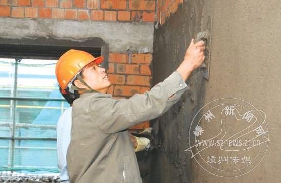 今年40岁的王杰来自河南,在嵊州已经生活了十个年头。1999年,在上海打工的王杰经老乡介绍来到嵊州,由于没有技术和特长,他只能从工地的小工做起,搬砖块、运水泥,有什么活就干什么活。由于做事勤奋、肯吃苦,加上脑子灵活,2005年起王杰到浙江宝厦建设有限公司做了施工队长,主要从事建筑的内外墙粉刷工作,手下的五六十位兄弟大多是来自河南的老乡。