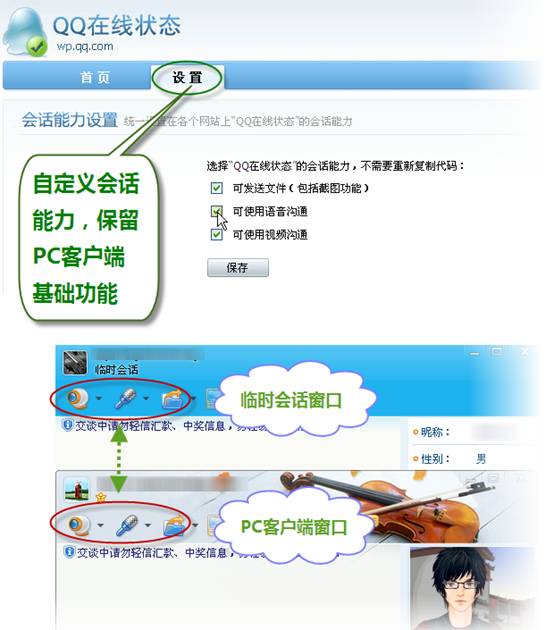 图5QQ在线状态V3.0版支持自定义会话设置