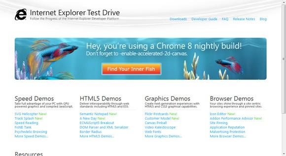 IE Test Drive网站也提供了多个新的演示,如采用HTML 5和CSS3技术的SVG直升机游戏和Flickr明信片等。