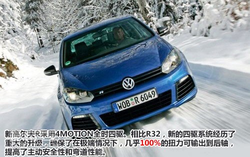 高尔夫R采用了采用大众专门为高尔夫车型所开发的4Motion四轮驱动技术,与大众其它采用4Motion车型不同的是,这款四驱系统更加适合运动型车型,而且尽量避免动力的浪费,这也使自动挡高尔夫R百公里加速仅为5.5秒。