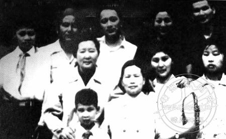 《永不消逝的电波》曾于1958年拍摄成电影。图为主演孙道临(后排左三)与李白之子李恒胜(后排左一)、裘慧英(前排右三)合影。
