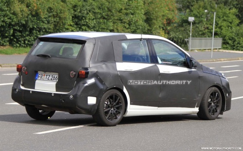 最近谍照记者拍到了正在进行测试的掀背车,从外观看,虽然新车的侧面轮廓模仿最近发布的2011款R级车,但仍保持了现行版较为方正的造型,外观风格与奔驰去年发布的BlueZERO概念车很相似。这次记者首次拍到了新车的内装,从照片看,档把安装在转向柱上,同时音响和导航显示屏的位置更高,在中控台顶部。