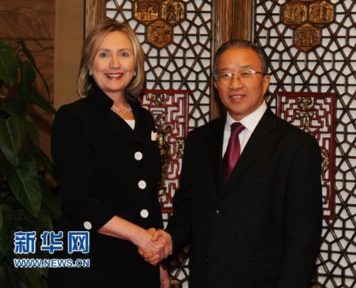 国务委员戴秉国30日在海南省三亚市与美国国务卿希拉里·克林顿举行非正式会晤。双方在坦诚、友好的气氛下就中美关系以及共同关心的问题深入交换了意见。同日,杨洁篪外长在东亚领导人系列会议期间,在河内会见了美国国务卿希拉里·克林顿。双方就中美关系和共同关心的问题交换意见。