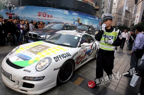 下午4点左右,当31辆跑车集体出现在解放碑时,立即引来上万市民围观。