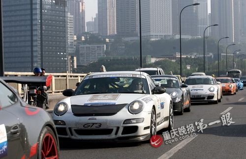 如今在重庆街头,豪车已很常见。但31辆保时捷跑车同时出现在街头还不多见。昨日,应重庆某房地产公司邀请,香港保时捷车友俱乐部的60多位会员驾驶31辆保时捷跑车来渝巡游,有人驾车从四公里追到解放碑拍豪车。