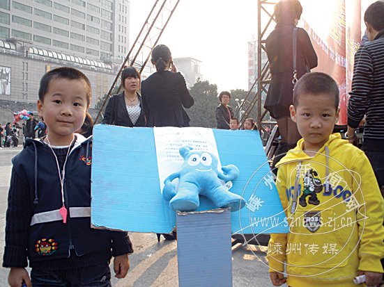 5元,6元,8元,10元,60元,68元,70元……海宝的价钱直线上升。陈彦铭父子俩的目光直直地盯着台下。台下喊到70元的时候,棒槌欢快敲响。一下两下三下,成交。买方是黄彦淇小朋友,也是一个海宝迷。成交后,两位小朋友还在海宝面前留影合照作纪念。照片中,卖方是心有不舍,买方是志满意得。