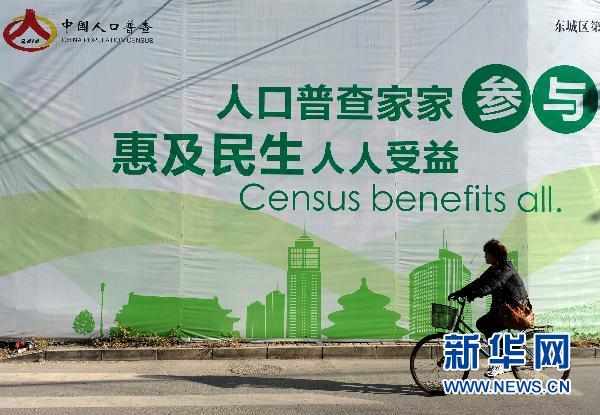 11月1日,北京市民从街头设立的中国人口普查的公益宣传牌前经过。第六次全国人口普查标准时点在11月1日零时到来。从当日开始,全国600多万名普查员和普查指导员将走进4亿多户住户,查清查实全国人口状况。新华社记者 罗晓光摄