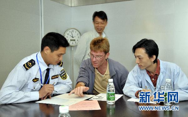 11月1日,深圳市龙岗区南澳街道某企业的普查员(左)在对外籍工作人员进行人口信息登记。当日,第六次全国人口普查全面展开,全国600多万名普查员和普查指导员将走进4亿多户住户,查清查实全国人口状况。 新华社发(李坚强 摄)