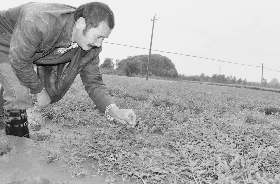 记者从嵊州市农发果业专业合作社了解到,该合作社已在该市黄泽镇拥有200亩野芹菜(当地又称水芹菜)种植基地,今后种出的野芹菜全部销往上海、香港等国际大都市。图为10月29日,当地农民正在对田里的野芹菜进行管理。 (张亮宗 李苏英 摄)