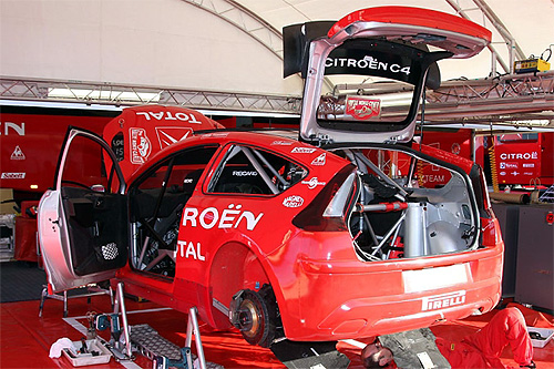 另外WRC赛车底盘上的另一个重要的变化是采用了与量产车截然不同的悬挂系统,雪铁龙C4为例,WRC C4赛车的悬架采用前后麦弗逊式独立悬架,并且前后悬架均采用螺旋弹簧作为弹性原件并配有可调气液减振器。而量产版雪铁龙C4全线均采用前麦弗逊后扭力梁式悬架。