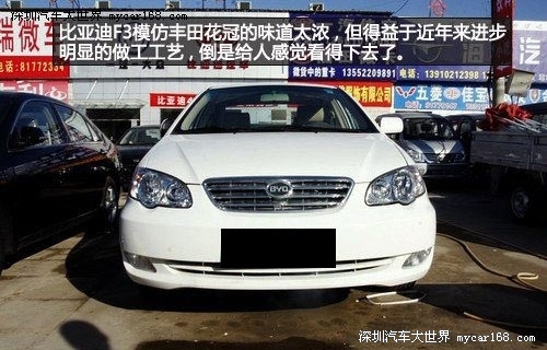 比亚迪F3的外形虽然一直为人诟病——模仿丰田花冠的味道太浓,但得益于近年来进步明显的做工工艺,倒是给人感觉越来越“能看”了。