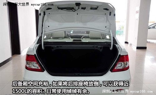 达到2600mm的轴距,保证了车内的乘坐空间:前后排头部空间都不错,身高一米七五的乘客入内,也能保证距离车顶有一拳左右的活动空间;但后排的腿部空间只能算是够用,较短的座椅坐垫更使得乘坐舒适性大打折扣。后备厢空间充裕,如果将后排座椅放倒,可以获得近1500L的容积,日常使用绰绰有余。