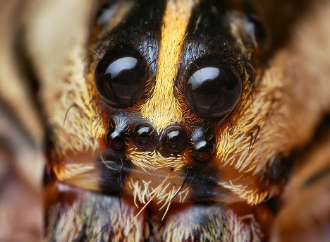 和普通蜘蛛一样,狼蛛拥有8只眼睛,但中间的一对眼睛要远大于其他6只。加上其露出两只獠牙的毛茸茸脸颊,更使其显得可怖。除了冰雪覆盖的地区,地球上各处都可以看到狼蛛的影子。成年狼蛛的体宽可以长到1英寸(约合3厘米)。