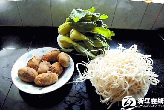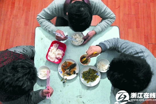 浙江在线11月09日讯 鄞州周宿渡社区低保户胡师傅一家四口,昨天午饭吃了两道菜:大白菜炒肉丝,茭白炒腊肠。除了邻居送的腊肠,还用去大白菜半斤,肉丝一两,茭白半斤。此外,四个人吃了三两米饭。