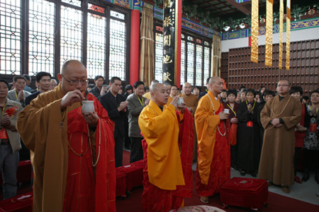 佛教在线浙江讯 2010年10月28日上午,浙江省嵊州市大明寺隆重举行地藏殿落成庆典暨地藏菩萨圣像开光法会,绍兴市佛教协会会长净芳法师,新昌县大佛寺方丈传实法师,及法弘法师共同为地藏菩萨圣像开光法会主法