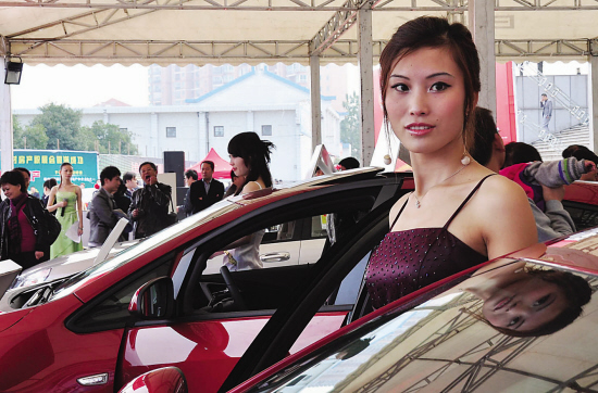 据悉,展商们早在前一天晚上就搭好台。在车展现场,香车美女吸引来的消费者是一拨接着一拨。