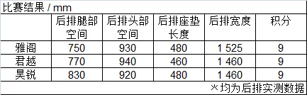 [昊锐的后排腿部空间以830 mm的数据在三位选手中占尽优势]