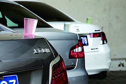[显然,最右侧雅阁的杯子余水最少,中间昊锐的成绩则略显优势]