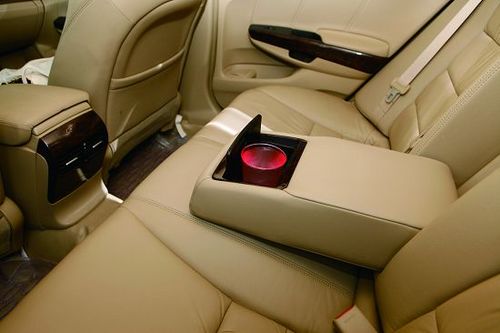 [雅阁的后排杯架需要借助外力才足以将水杯固定]