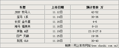 在11月的时间里售价在4-6万元左右的长安金牛星是一款亦农亦商的车型,长安在微车领域也拥有完善的销售和售后服务体系,在同级别同价位车型中还是非常值得期待的。其他车型方面奔驰目前引进在中国市场价位最低的轿车,但是奔驰A级依然是同级别中售价最高的一款。上海通用在国内中端MPV中凭借GL8的表现一直是无冕之王,11月底别克全新GL8将会上市凭借多年以来积累的口碑,全新GL8想不大卖恐怕都难啊。