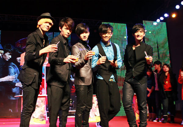 活动最后,主办方将精心准备的至上励合Q版公仔赠与至上励合,五位大男孩拿到和自己样子相仿的玩偶觉得很有趣,都爱不释手。他们表示成员中也有通过选秀出道的,很希望通过“潮人辣歌汇”这样的活动,多给年轻人提供展示自我的舞台,实现自己的梦想。