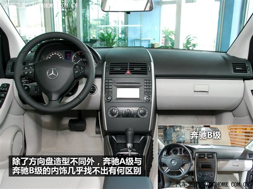 奔驰A级的内饰风格,可以说和奔驰B级如出一辙。其中,如果不是方向盘造型不同,几乎很难从中控台的造型上分辨出奔驰A级与奔驰B级的区别。