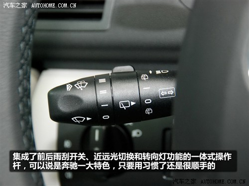 奔驰的转向灯拨杆可以说功能强大,别的品牌车型需要用两根拨杆解决的问题奔驰用一根拨杆就搞定了,这个做法和早年采用怀挡的别克、凯迪拉克等车的设计比较相似,使用上没有任何难度,但如果是第一次开奔驰则需要习惯。带限速功能的定速巡航系统对于奔驰来说是最普通不过的东西,但在这个级别车型中则不多见,而与同价位的宝马120i或奥迪A3相比,貌似也只有奔驰全系标配定速巡航了。