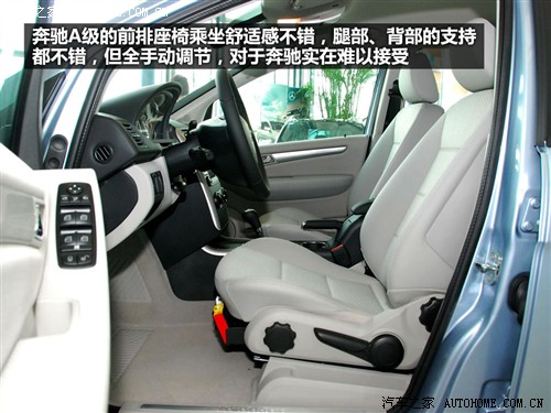 奔驰A级的前排座椅舒适性没有什么问题,无论是座椅的软硬程度还是背部、臀部或是腿部的支撑都很到位,但全手动调节无论从使用的角度还是心理的感受都比较难以接受。从功能性上,腰部支撑调节、靠背角度调节、座垫高度、仰角和前后调整一个不少,但操作起来就比较麻烦了,不管怎么说这都是一辆奔驰,而且就是因为它是奔驰,所以总觉得手动座椅与它的品牌有点格格不入。