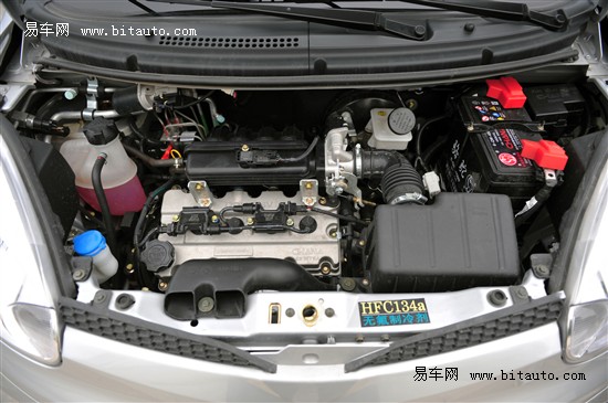 奔奔mini采用C10直列四缸双顶置凸轮轴16气门1.0升汽油发动机,该发动机的最大功率达到51.2Kw/5600rpm,最大扭矩90N.m/4600rpm,工况油耗测试成绩为百公里5.8升。当发动机达到2000-3000转时,扭矩可以达到最大输出的90%,这个转速也是日常较为常用的转速范围。