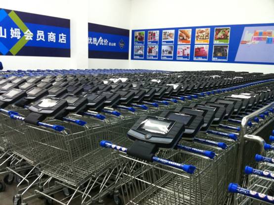 该智能购物车是在普通购物车的把手上加上了一个液晶触摸显示屏,通过点击搜索可以迅速找到自己关心商品的打折信息。更为让顾客欣喜的是,当自己走到某个货架前,购物车可以主动通过语音和图片提示身边哪些商品正在打折。这样,顾客就和商品的沟通实现了零距离。这不得不佩服作为零售巨头的沃尔玛,真正将门店的促销活动发挥到了极致,也体现了山姆店一贯的服务至上的经营理念。