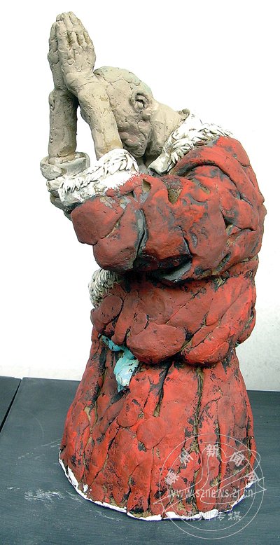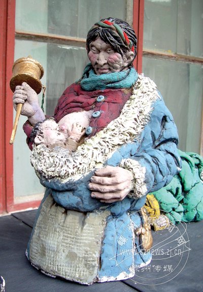 记宓风光创作的彩塑泥人系列《朝圣》