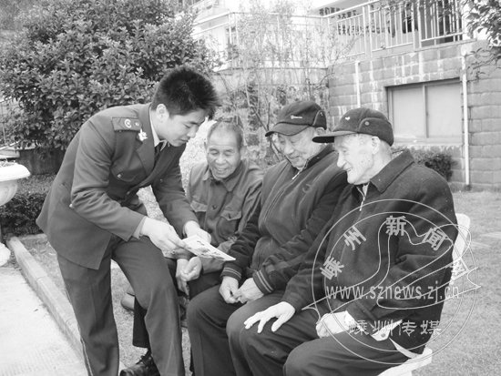 冬季是火灾高发季节,我市消防大队为防患于未然,结合11月消防月宣传活动,组织人员走进社区、学校及敬老院等地宣传消防知识,向社区居民传授安全用火、防火及发生火灾时逃生、灭火的相关知识和技巧。图为11月18日,消防人员向阳光山庄(市级敬老院)的老人们讲解消防知识。