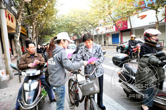 记者和志愿者一边向过往市民分发《致市民朋友的公开信》,一边在交警的协助下对不文明交通行为进行劝导。大部分市民投来赞许的目光。